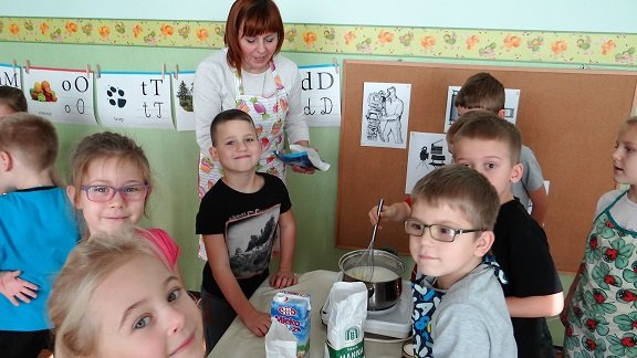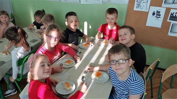 Zajęcie było kontynuacją projektu „Zdrowa kasza”. Każdy stolik miał do wykonania inną część deseru.