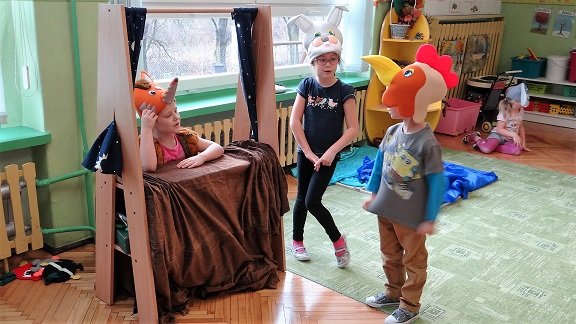 7 listopada zakończyliśmy cykl zajęć z Programu Literackiego Klucza do Uczenia się . W ramach zajęć pracowaliśmy nad bajką „Lis zając i kogucik”. Poznaliśmy dokładnie fabułę bajki , wybieraliśmy figury zastępcze dla postaci i przedmiotów z bajki tworzyliśmy modele epizodów do obrazków epizodów . W oparciu o poznane postacie z bajki, zastanawialiśmy się czy lepiej być silnym , czy mądrym . Poznaliśmy życie i zwyczaje lisa oraz wiemy dlaczego mówimy o nim chytry , przebiegły i cwany . Poznaliśmy morał bajki : „Jeśli jesteś odważny i pewny siebie możesz osiągnąć swój cel” . Wykonaliśmy lisa z papieru . Zakończyliśmy bajkę występem teatralnym .